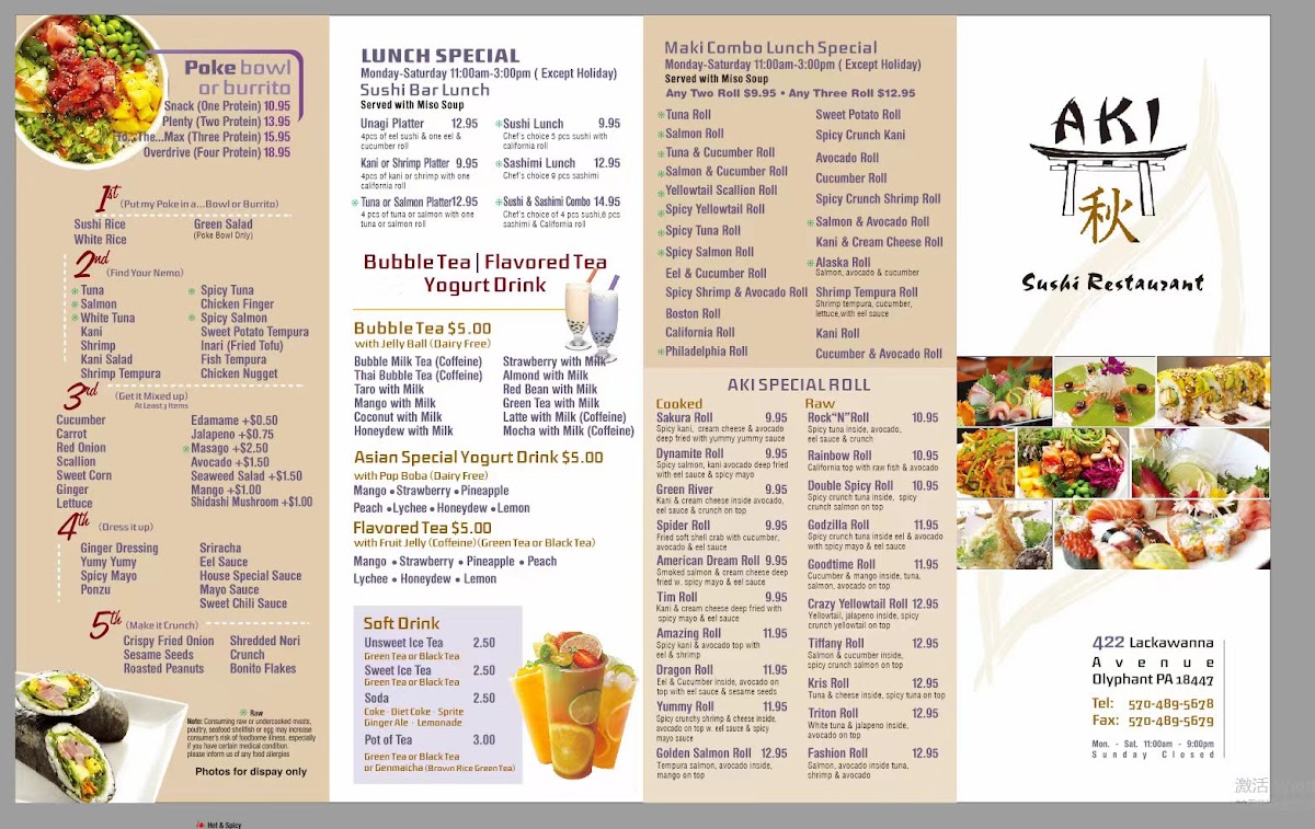 The menu at Aki Asian Restaurant offers a balanced selection of approachable Asian dishes, blending familiar favorites with a few creative twists. Whether you're in the mood for a light bite or a more substantial meal, the menu provides options that suit various moments, from a casual lunch to a relaxed dinner with friends or family.